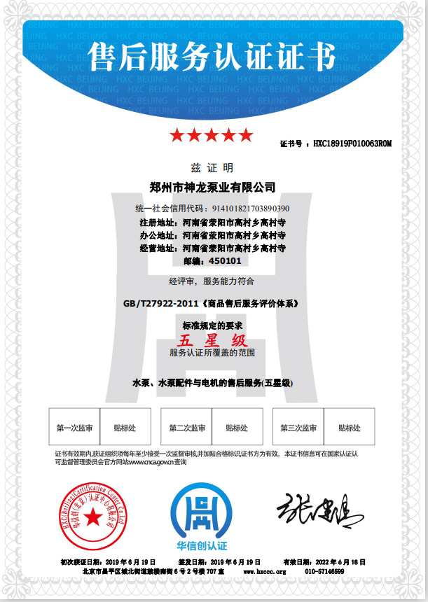 祝贺九游网页版·官方端入口获得水泵、水泵配件与电机的五星级售后服务认证。
