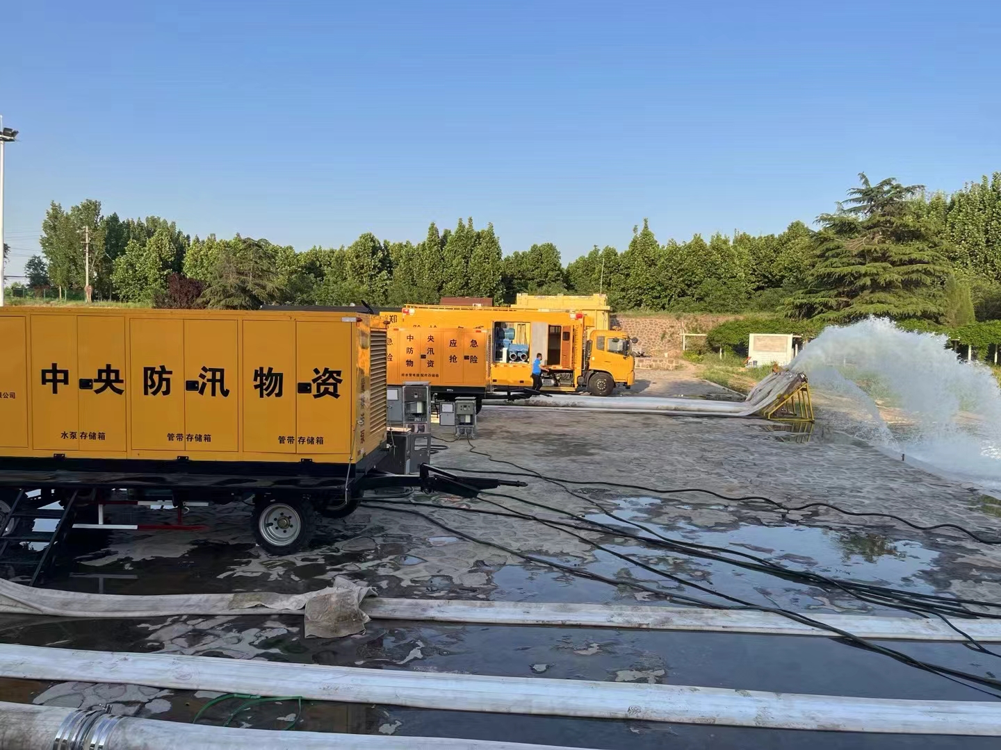 抗洪现场共计神龙大流量排水抢险泵车30套,根据抗洪现场的实际情况,按照抗洪抢险指挥部的要求,抢险小分队实行人员轮流上岗,排涝设备24小时不停机连续作业,与其它省份抢险小分队一起争分夺秒排涝,尽最大努力,以最快的时间排完受灾区域洪水。